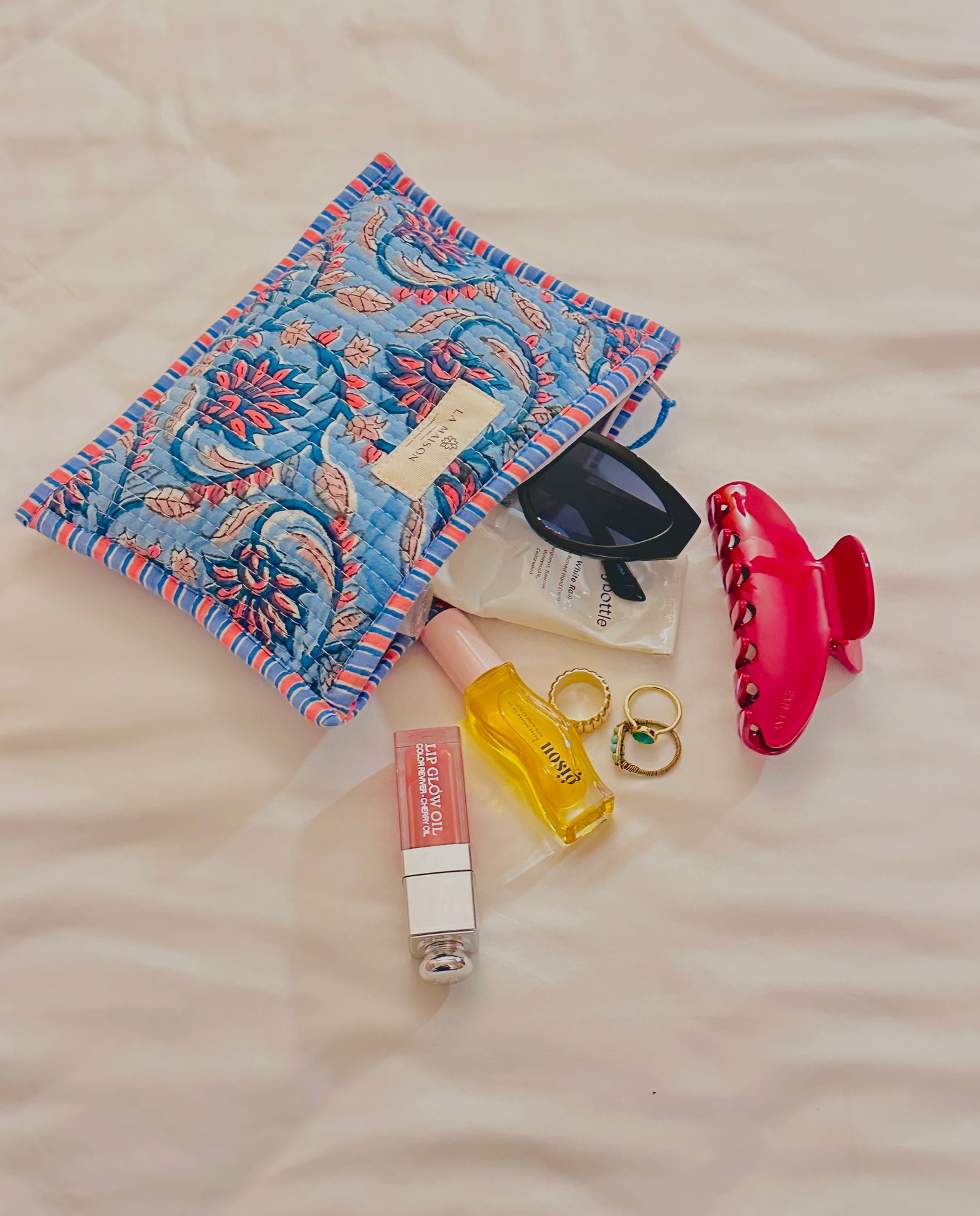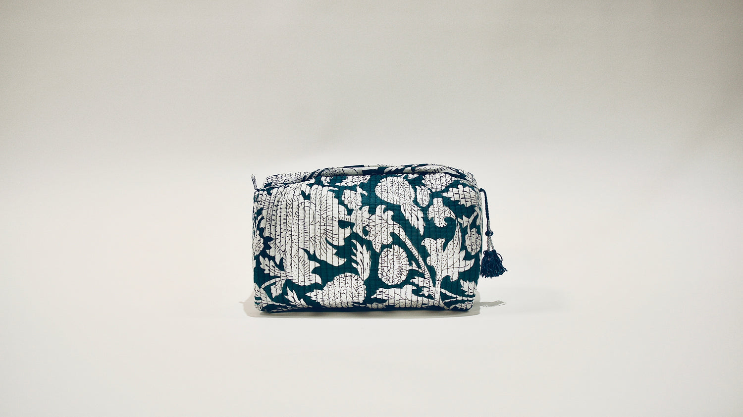 Designed with pure cotton and linen fabric, block-printed on both sides, the fully hand-embroidered travel pouches and wallet are light, durable, easy to carry your daily necessities.
