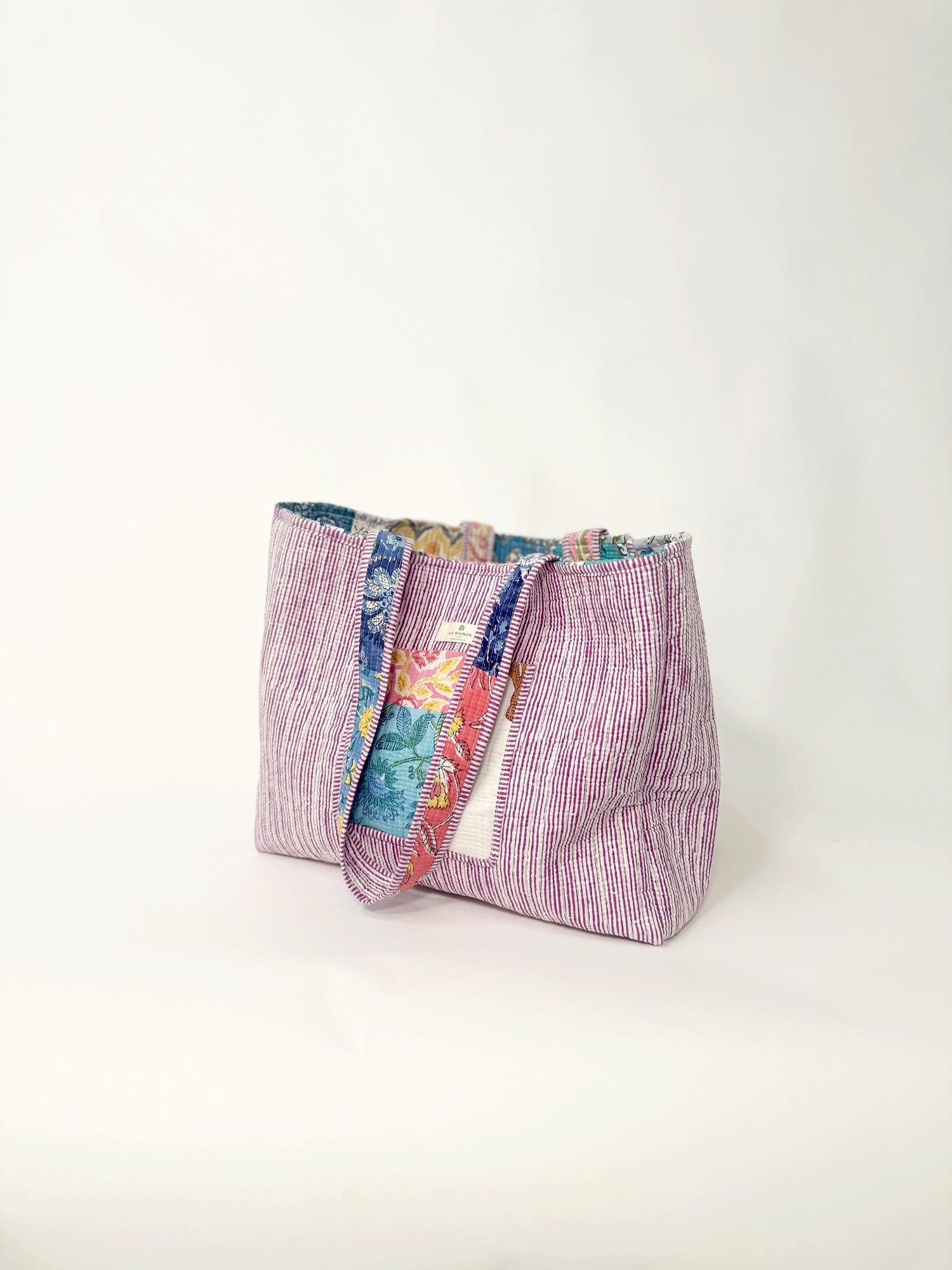 Introducing "The Roshan" Collection, a vibrant celebration of artistry and heritage that transports you to the enchanting city of Jaipur, India. Nestled within this collection are the exquisite quilted reversible Tote Bags, lovingly handcrafted by local artisans who possess a profound connection to their craft.